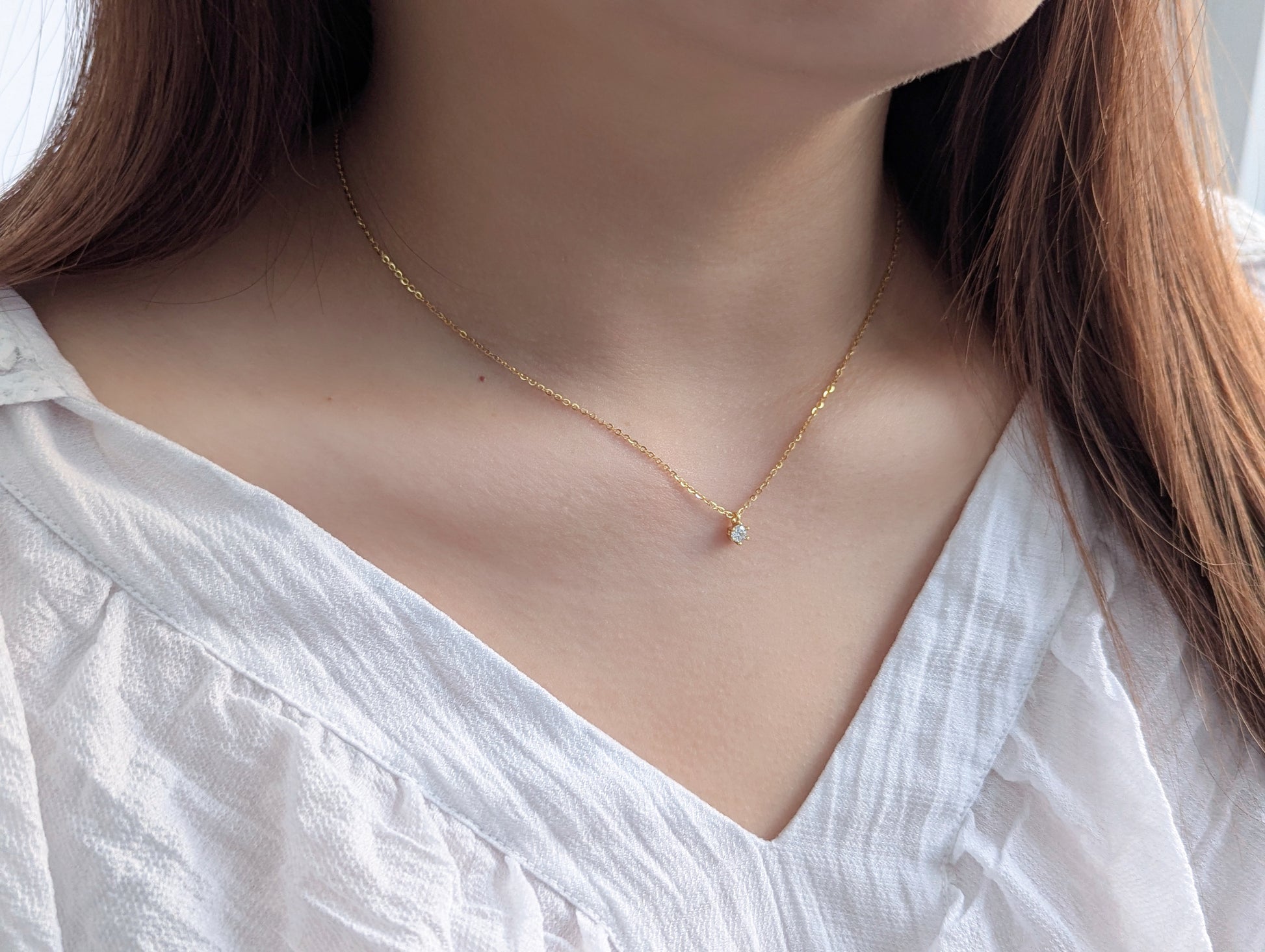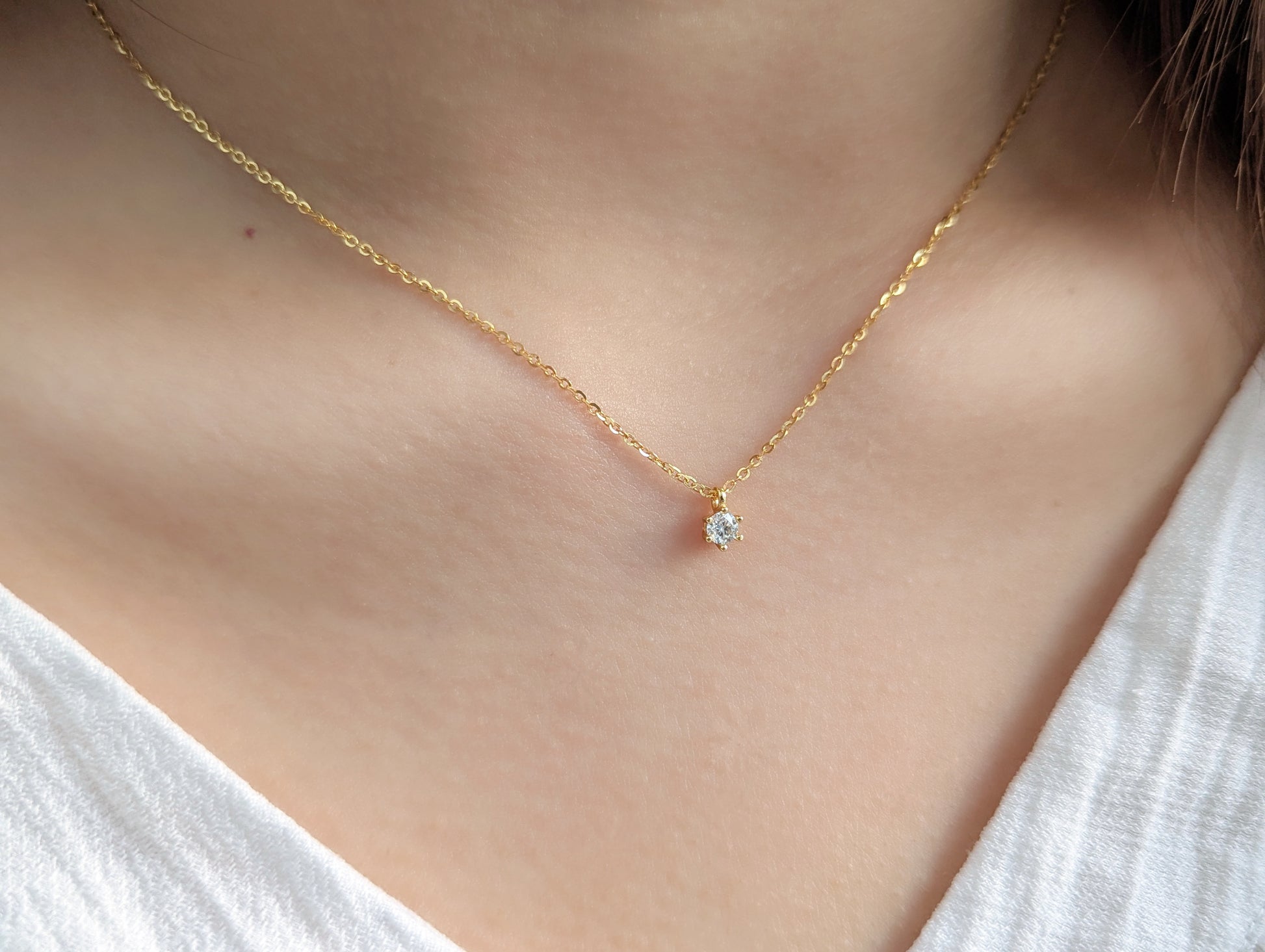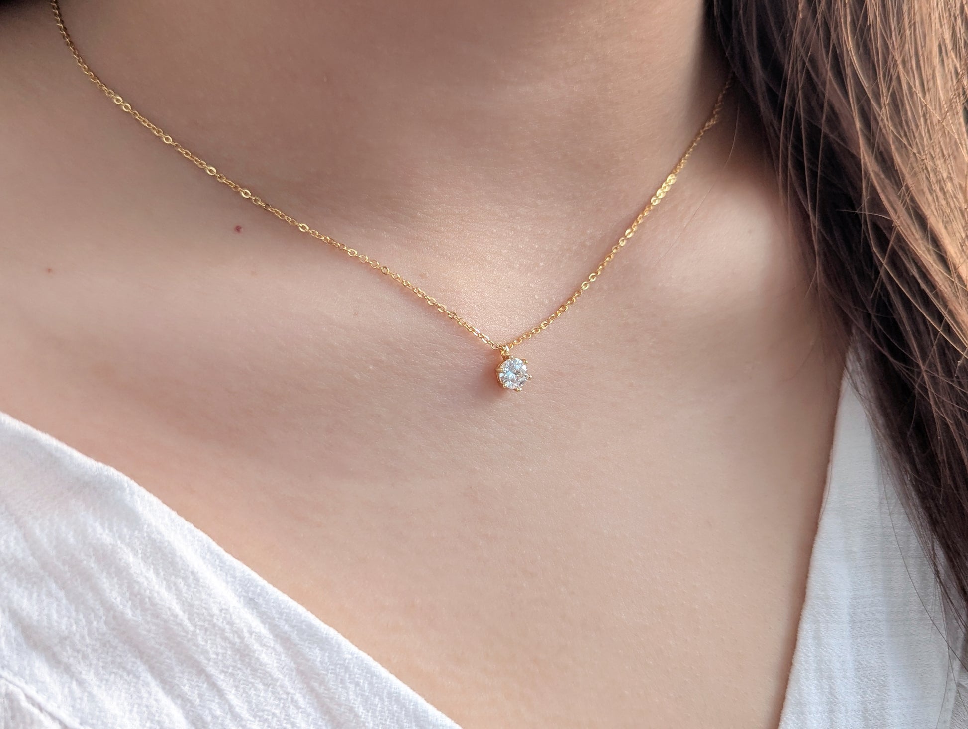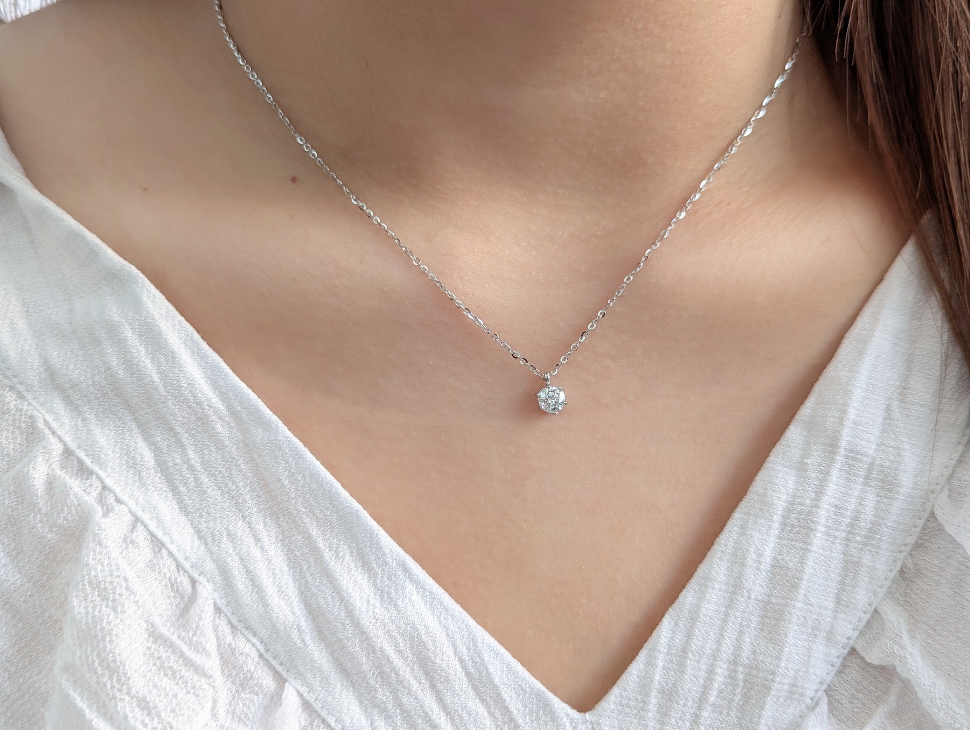 Diese Halskette aus 925er Silber, wahlweise mit 18K-Vergoldung, ist mit hochwertigem 5A Moissanit in 0,2 oder 0,5 Karat erhältlich.