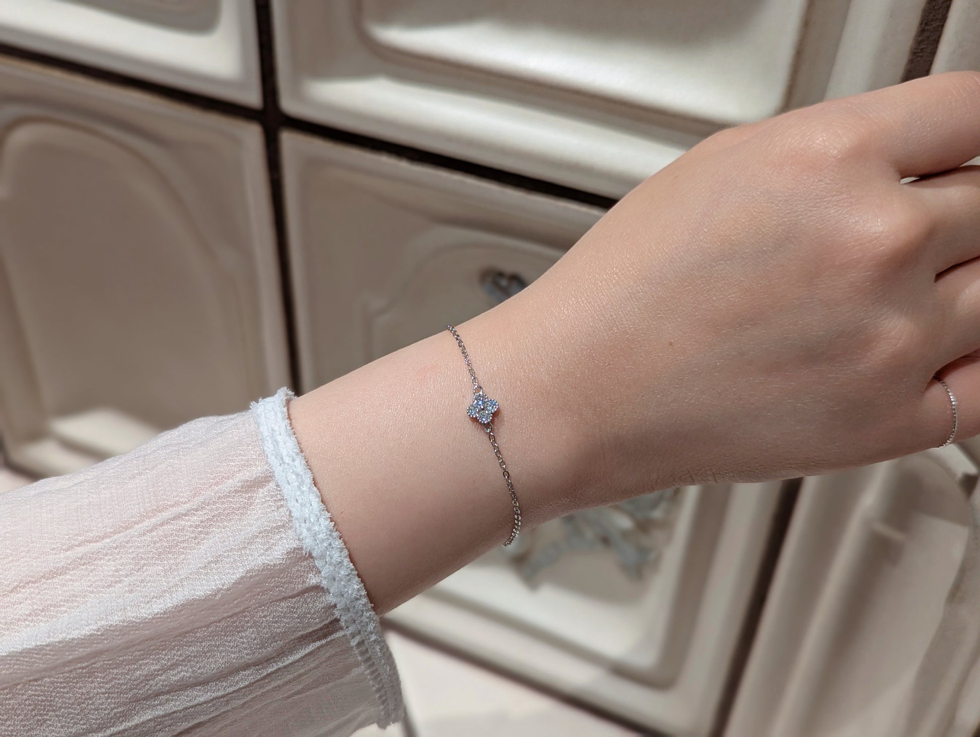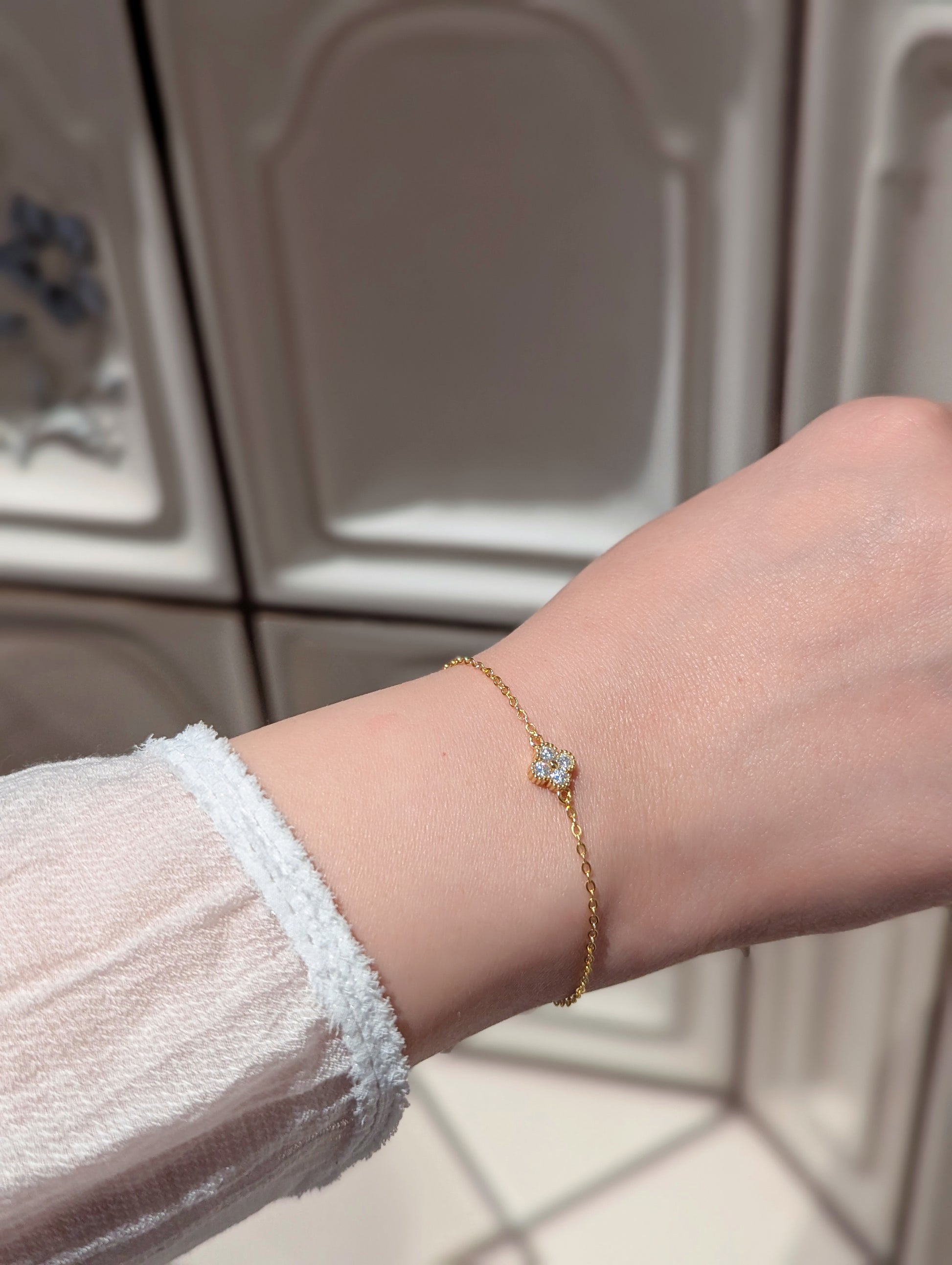 Zartes Armband mit einem Kleeblatt-inspirierten Design aus funkelnden Moissaniten. Gefertigt aus 925er Silber und wahlweise mit 18K Vergoldung – ein Symbol für Glück, Licht und innere Stärke.