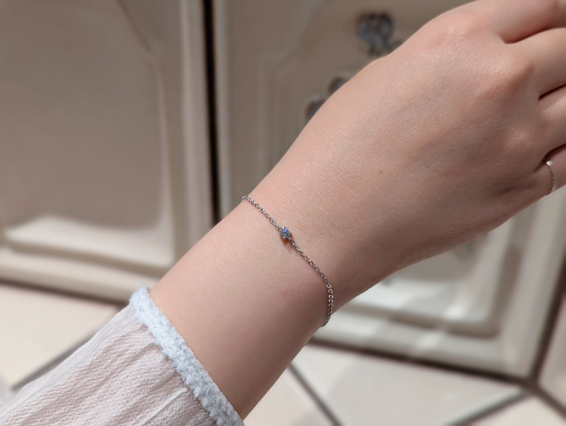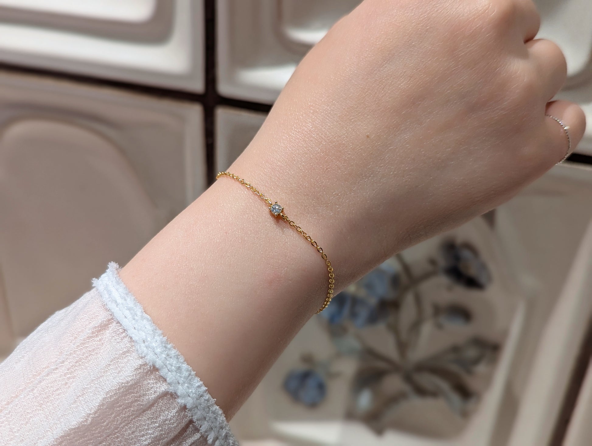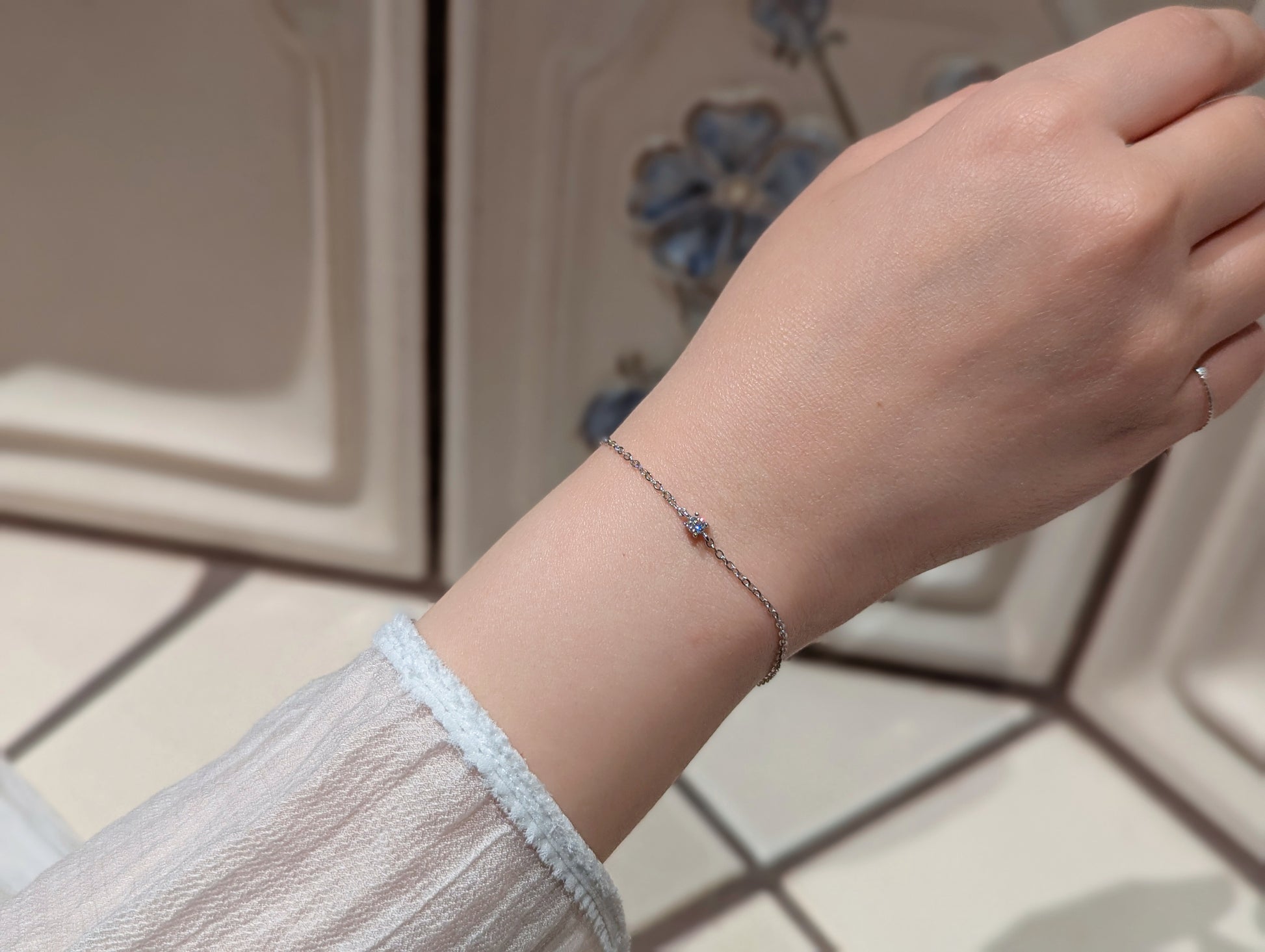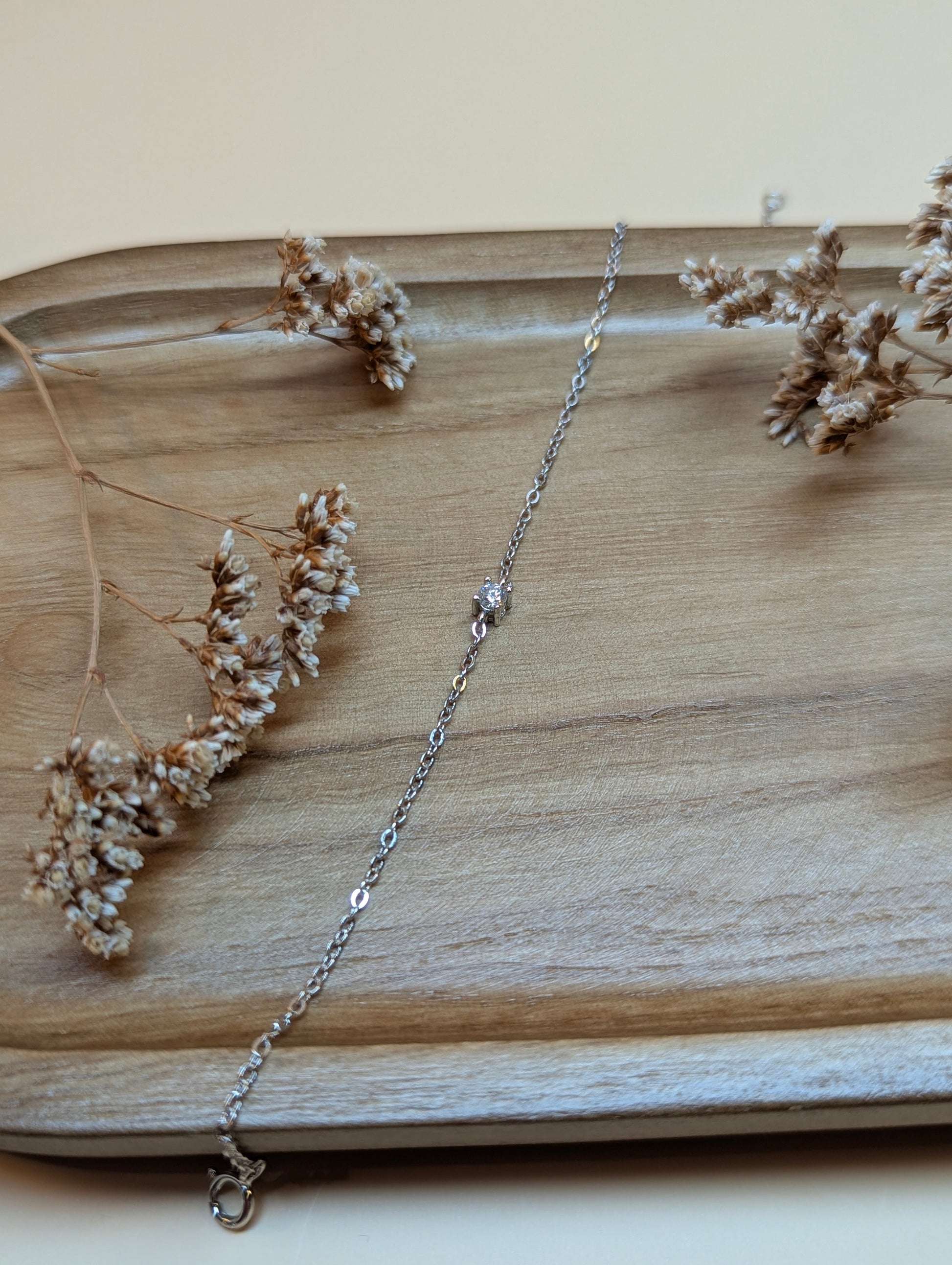 Ein minimalistisches Highlight: Eine einzelne 0,1 Karat Moissanit (5A Qualität) funkelt auf einem filigranen Armband aus 925er Silber – wahlweise vergoldet mit 18 Karat. Mit verstellbarer Länge (15 + 3 cm) begleitet dieses Schmuckstück jede Bewegung mit einem Hauch von Sternenlicht – für Frauen, die ihre eigene Bahn mit Eleganz und Stärke gehen.